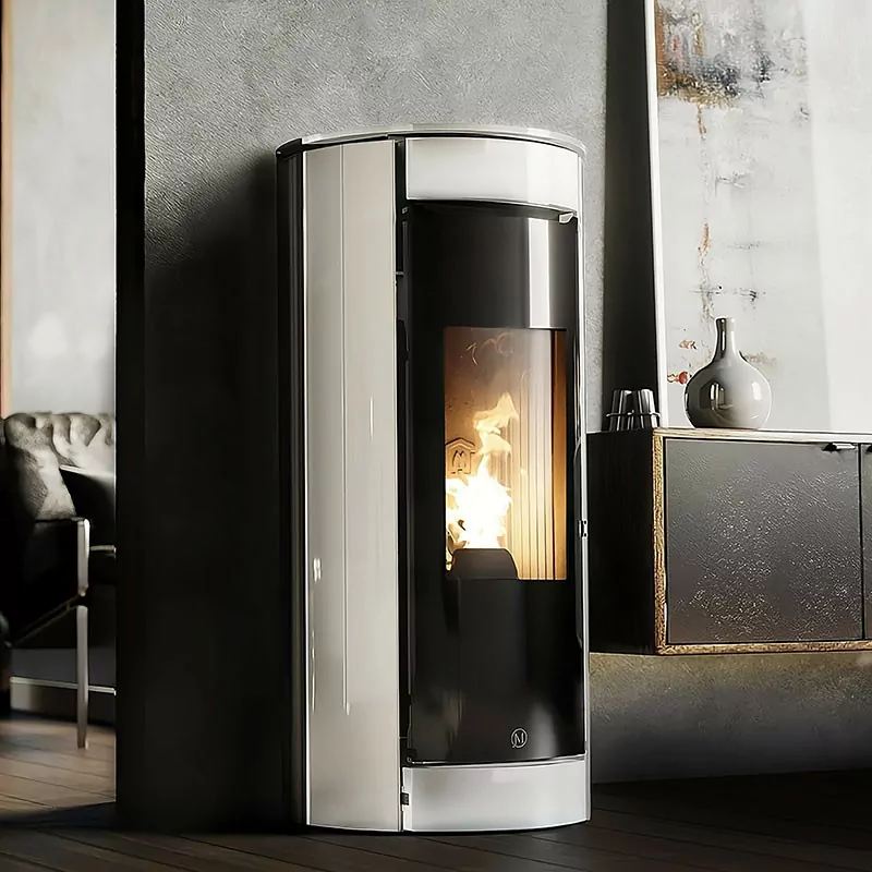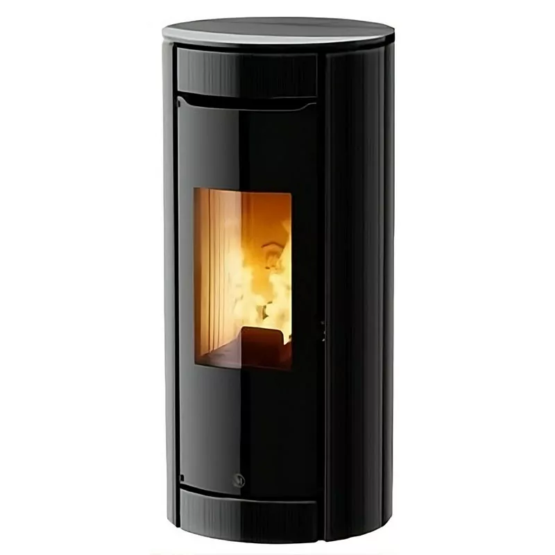 Le poêle Botero 2 se distingue par son habillage en verre laqué, offrant une finition moderne et élégante. Sa façade sans grille de ventilation apparente met en valeur la large vitre en vitrocéramique, sublimant la vision des flammes. Son format arrondi le rend particulièrement adapté aux installations dans les angles.