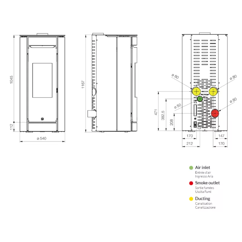 Ce poêle est compatible avec une évacuation des fumées en zone 1, 2 et 3, offrant plus de flexibilité dans son installation.