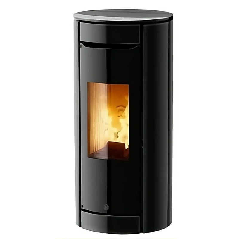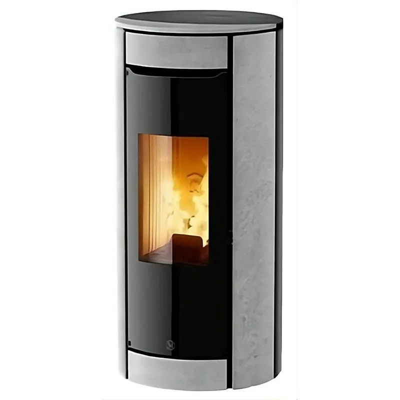Le poêle Botero 2 se distingue par son habillage en verre laqué, offrant une finition moderne et élégante. Sa façade sans grille de ventilation apparente met en valeur la large vitre en vitrocéramique, sublimant la vision des flammes. Son format arrondi le rend particulièrement adapté aux installations dans les angles.