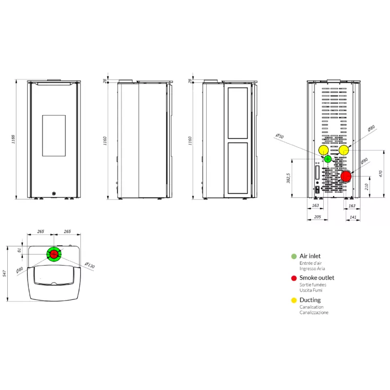Diamètre sortie des fumées (mm): 80