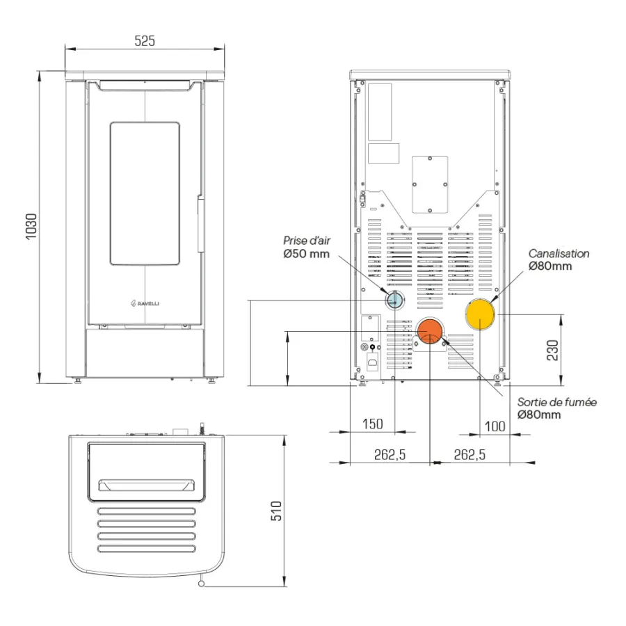 Sortie fumée Ø80 mm, Postérieure