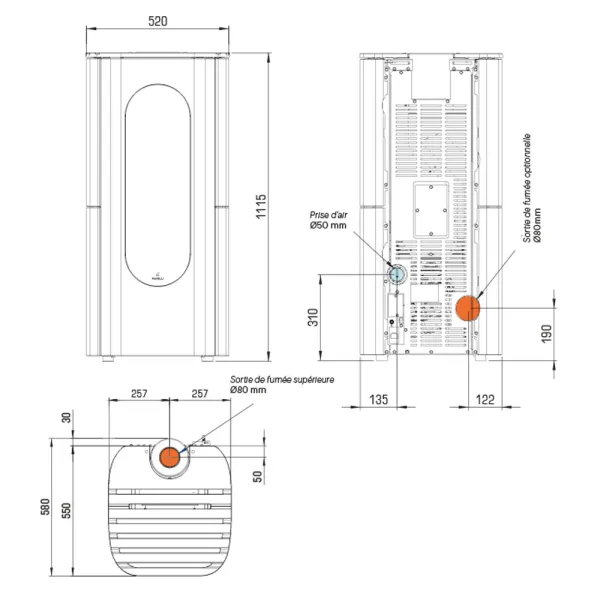 Sortie fumée Ø80 mm, Supérieure