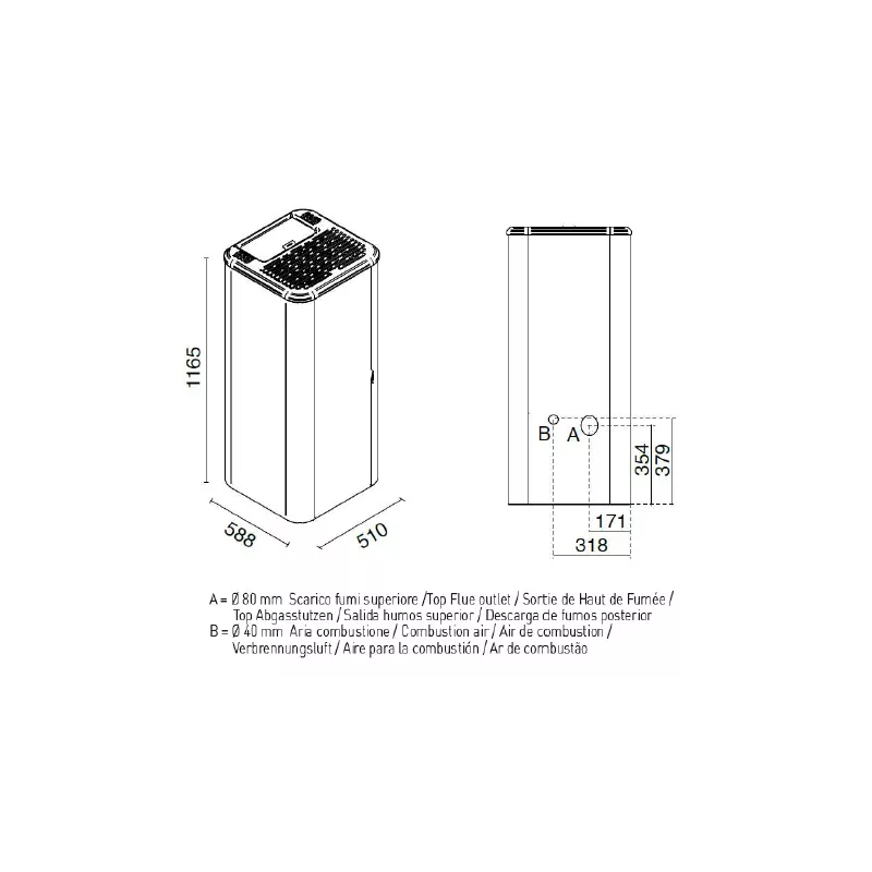 Caractéristiques techniques du Poêle à granulés étanche Roma