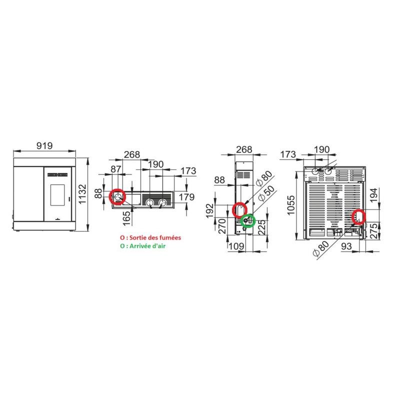 • Évacuation des fumées : Arrière / Supérieure / Latéral
