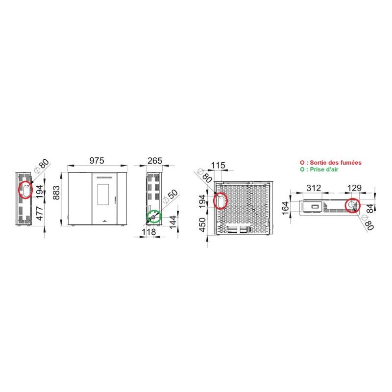 • Évacuation des fumées : Arrière / Supérieure / Latéral