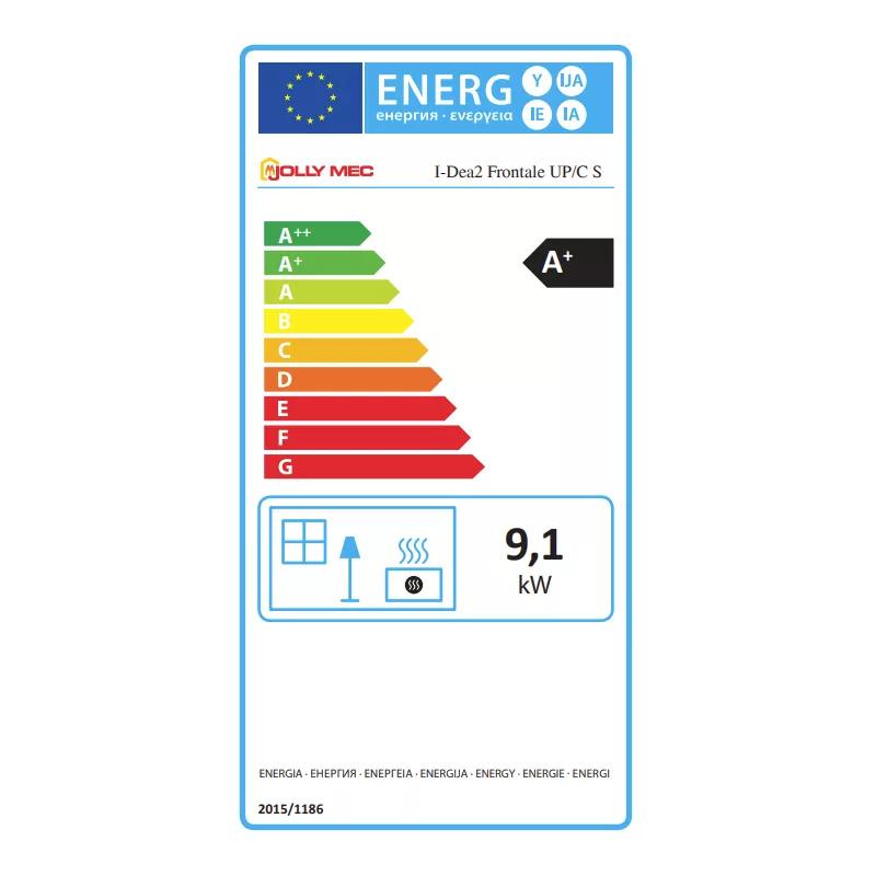 Caractéristiques techniques du Poêle à granulés extra plat Jolly Mec I-DEA Frontale (sortie dessus concentrique) 9.9 KW Reconditionné