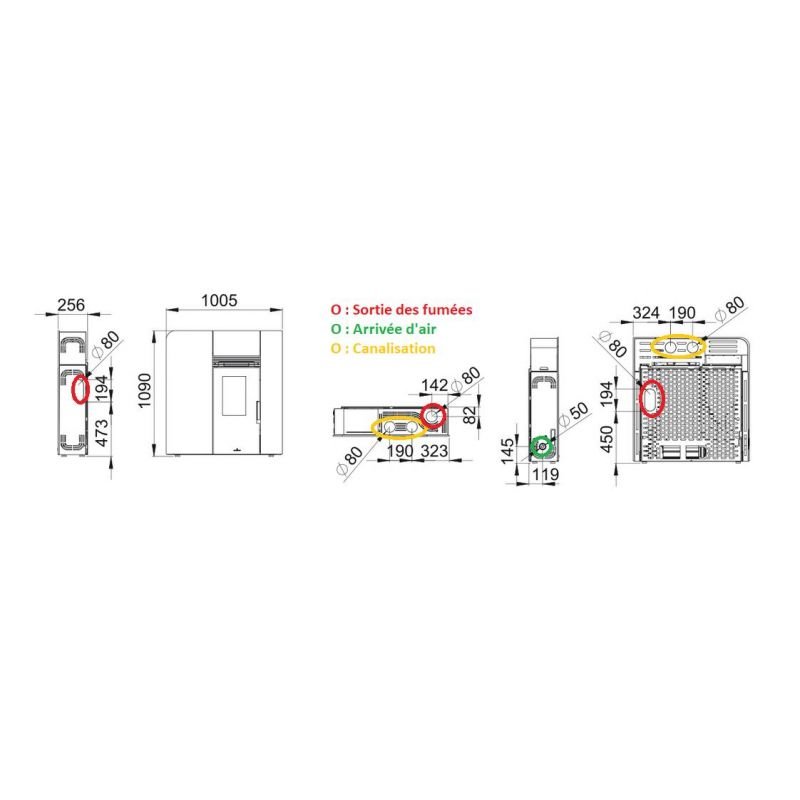 • Diamètre sortie de fumées : 80 mm