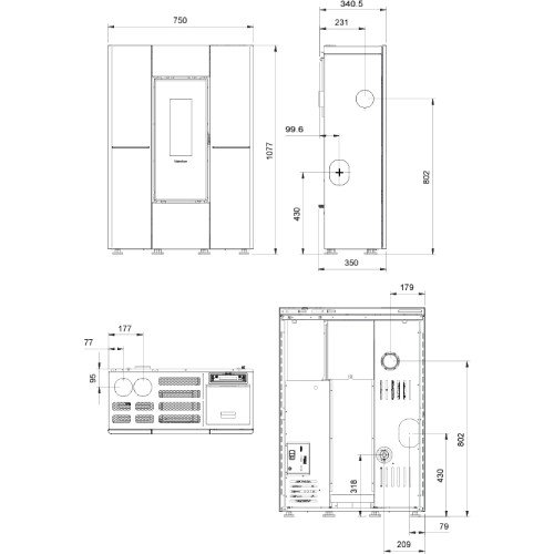 | Hauteur au raccordement du tuyau de fumée ca (au-dessus) (mm): | 1077 |