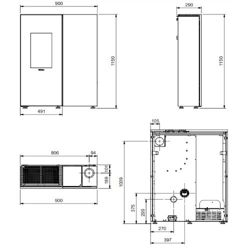 | Dimensions de l’appareil (H x L x P) (mm): | 1150 x 900 x 290 |