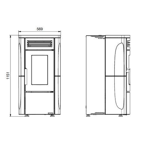 – Poêle à pellets avec conduit avec deux sorties séparées et équipement de haute qualité. Par exemple, le brasier autonettoyant est en fonte et possède un motoréducteur sans balais.