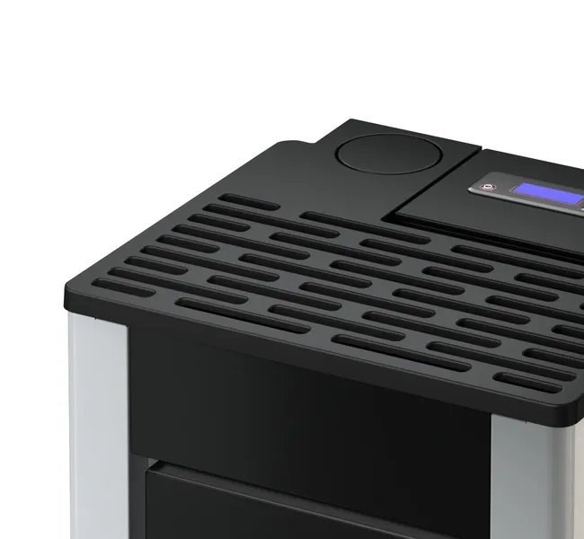 Poêle étanche AIRTIGHT SILENT SYSTEM mode silence en puissance reduite Programmation jour/hebdo Système WI-FI intégré Ecràn confort à programmation facile Télécommande Couvercle en fonte Chambre de combustion DUO-SHIELD Brasero en fonte avec systéme EASY START Liaison thermostat externe Sortie fumees postérieure/supérieure
