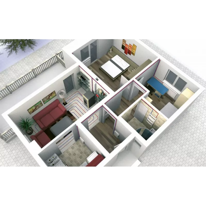 - Tout équipé, prêt à raccorder : composants nécessaires au fonctionnement du système de chauffage intégrés