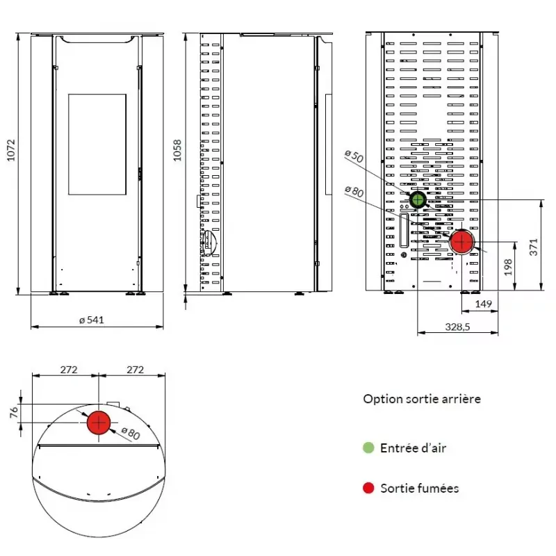 Diamètre sortie des fumées (mm): 80