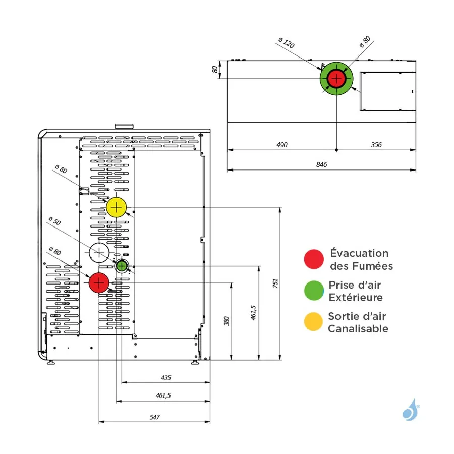 Ø Sorties Fumées : 80/130 mm