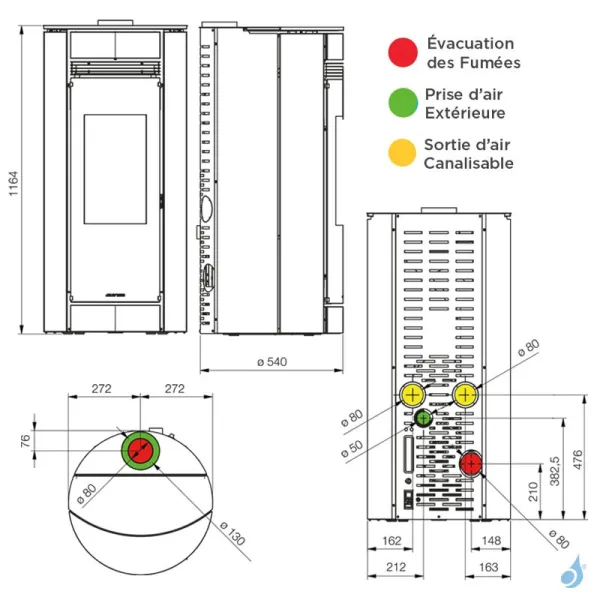 Ø Sorties Fumées : 80 mm