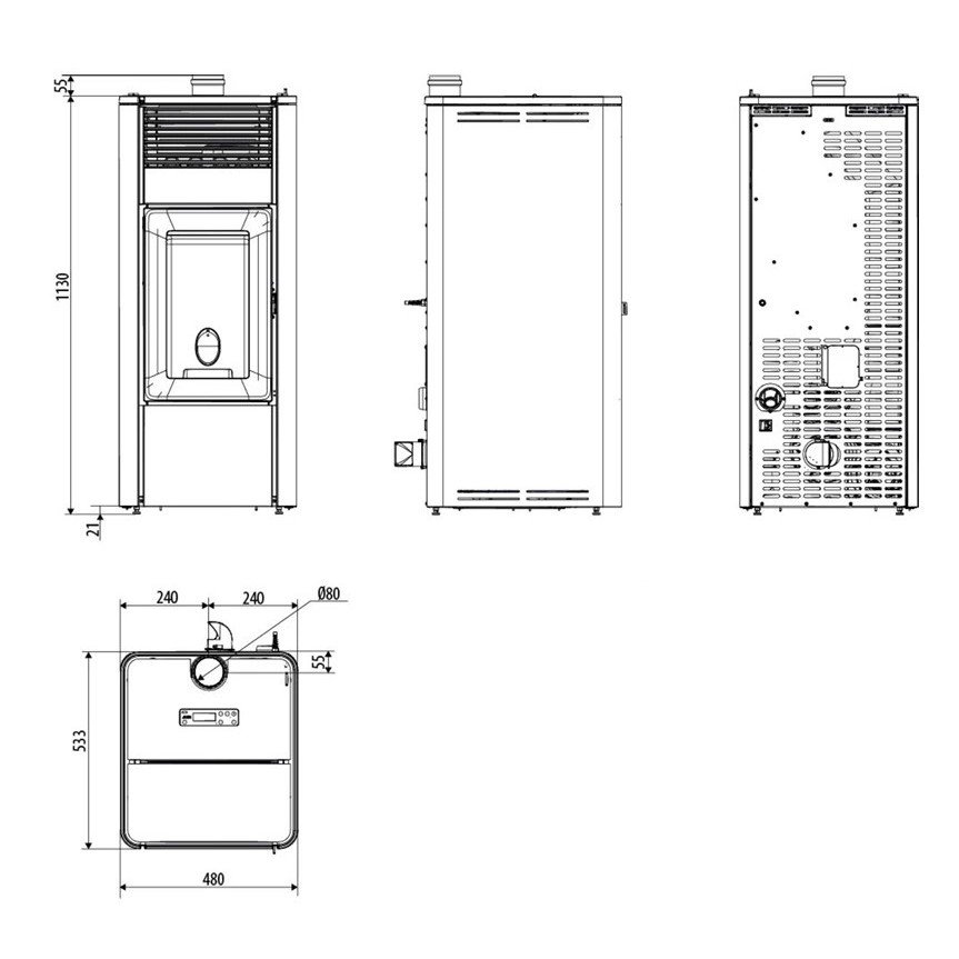 Ø sortie de fumée (mm): 80