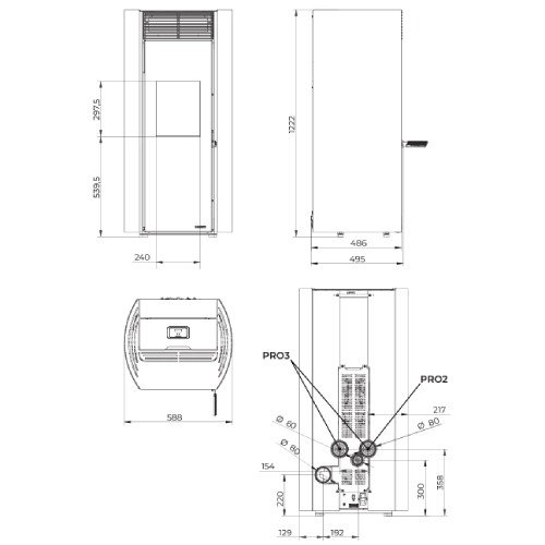 | Hauteur au raccordement du tuyau de fumée (à l’arrière) (mm): | 220 |