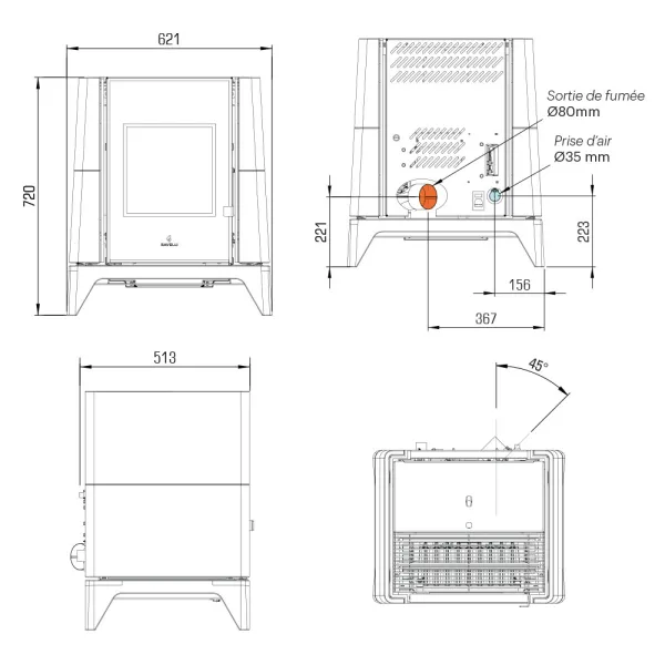 Sortie fumée Ø80 mm, Postérieure