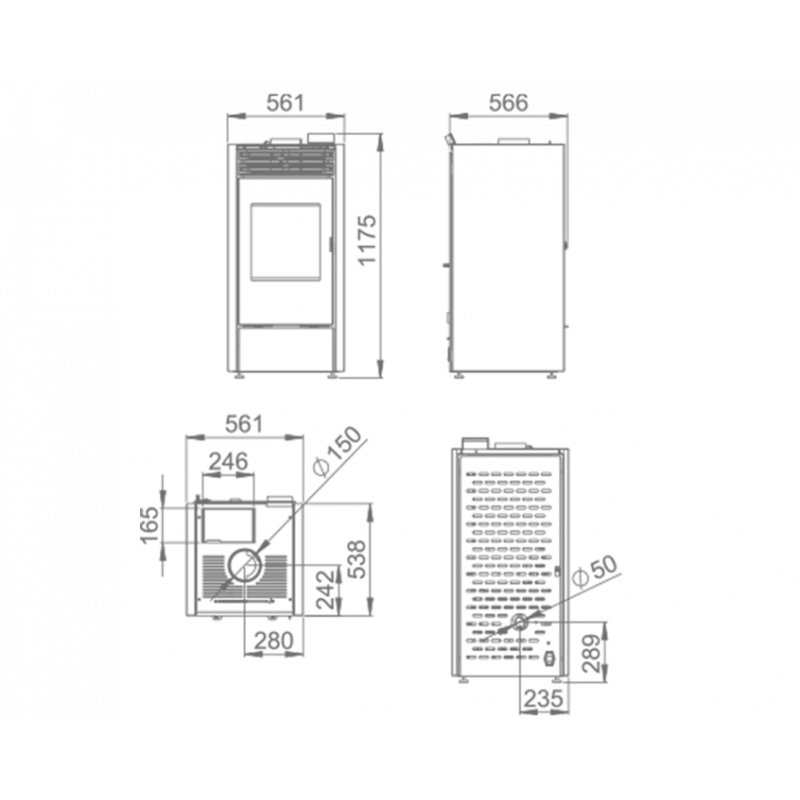 Caractéristiques techniques du Poêle mixte bois et granulés Bronpi BiWood – 10 Kw