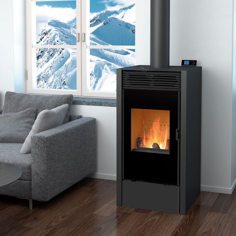 Polyvalent: Chauffe efficacement avec du bois ou des granulés, offrant une flexibilité d’utilisation selon les besoins et selon le coût de l’énergie.